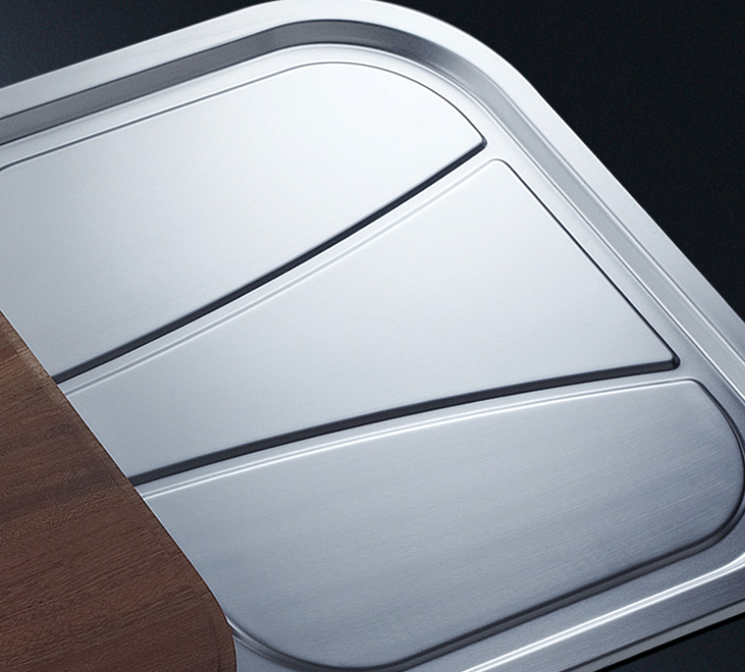阿發(fā)水槽整體經(jīng)拉絲處理,質(zhì)地更加光滑,視覺更加柔和。能有效抵擋異物撞擊,刮傷及磨損,防止油污沾染,常用常新;柔和的光澤令水槽平添高雅氣質(zhì),更能避免鏡面材質(zhì)反射的光污染