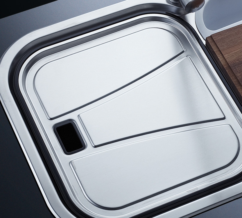 槽底采用斜面壓痕,四輻導(dǎo)流槽設(shè)計(jì),與平面壓痕和無痕水槽相比,導(dǎo)水更為流暢,下水更迅速,能有效防止積水,消除沉淀物