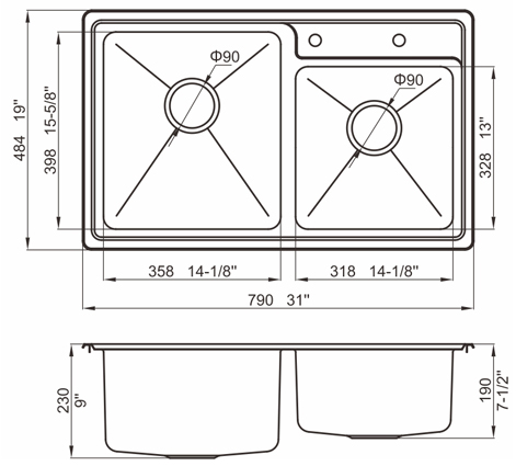 槽底采用斜面壓痕,四輻導(dǎo)流槽設(shè)計(jì),與平面壓痕和無(wú)痕水槽相比,導(dǎo)水更為流暢,下水更迅速,能有效防止積水,消除沉淀物