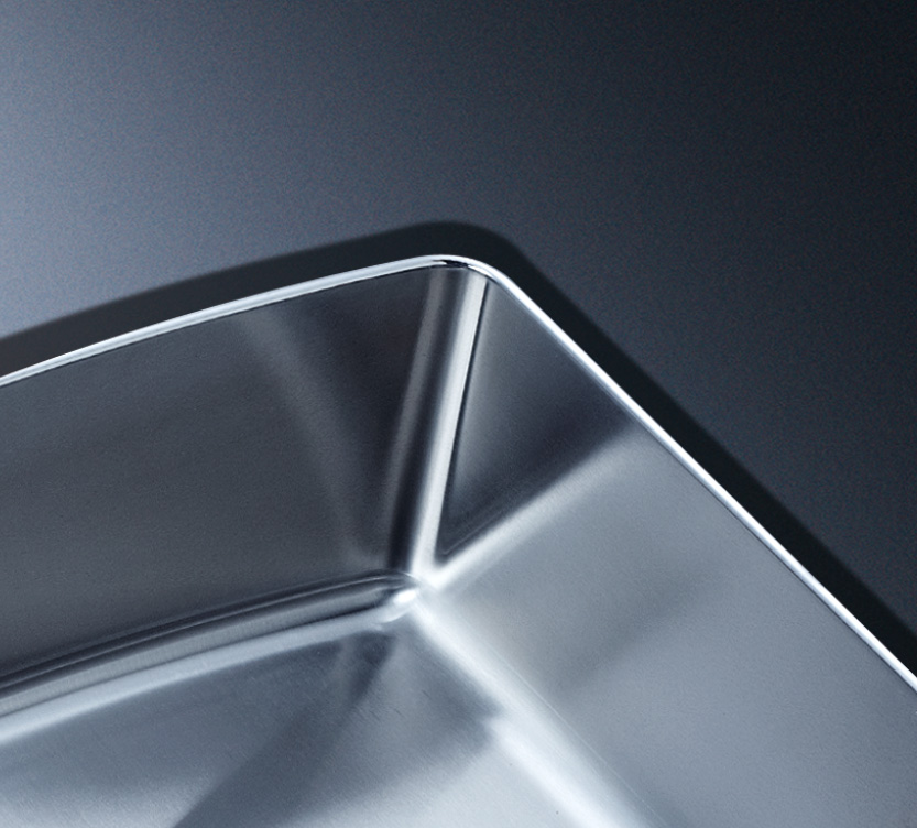 阿發(fā)水槽立邊采用國(guó)際先進(jìn)的10-25°小R角一次成型拉伸技術(shù),更具立體感與時(shí)尚潮流,亦能充分?jǐn)U展水槽利用空間;一次成型拉伸技術(shù),杜絕了焊接工藝易產(chǎn)生的水槽生銹,脫焊事故,充分保障水槽50年以上的使用壽命
