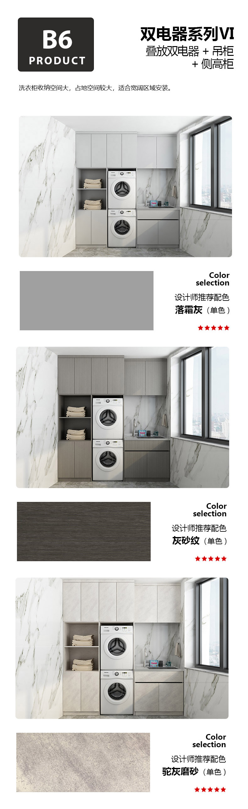 B6-疊放雙電器+吊柜+側(cè)柜(不銹鋼陽臺洗衣柜)